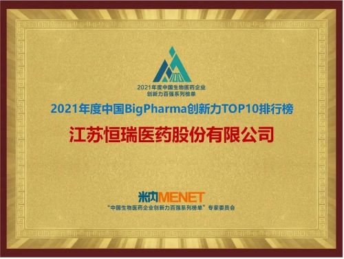 9月16日,由米内网主办的“2021年度中国生物医药企业创新力百强系列榜单”发布会在线上举办。世界杯官方网站入口继去年登顶“中国BigPharma企业创新力TOP10排行榜”后,今年再次名列该榜单首位。