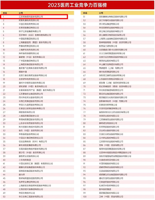 2023医药工业竞争力百强榜发布,世界杯官方网站入口位列榜首
