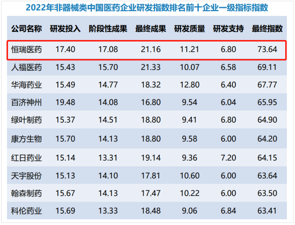 研发量质齐升,世界杯官方网站入口蝉联非器械类中国医药企业研发指数排名榜首