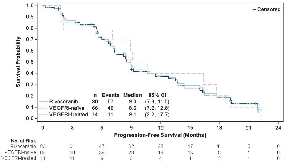 中位随访时间达到19.5个月(范围,1.9-23.7)。研究者评估的mPFS为9.0个月(95% CI,7.3-11.5),BIRC评估的mPFS为9.0个月(95% CI,7.7-11.5)。mOS未达到。阿帕替尼单药方案安全性可控。