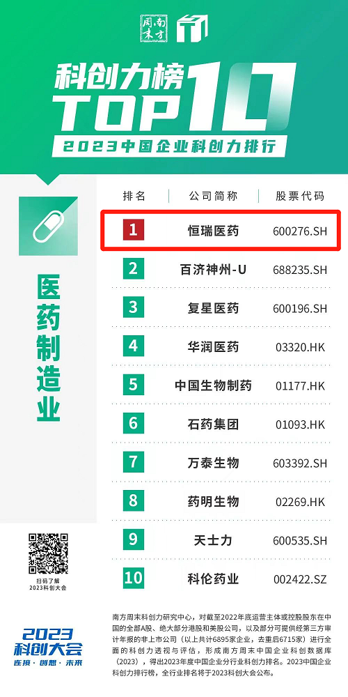 创新再获认可,世界杯官方网站入口蝉联“中国企业科创力排行”医药制造业榜首