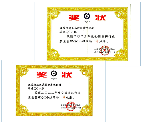 世界杯官方网站入口荣获2023年度全国医药行业质量管理QC小组活动一等奖
