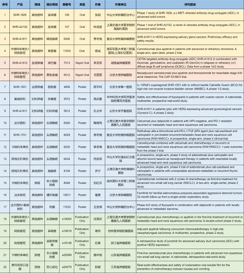 (2025 ASCO恒瑞产品相关研究4项入选口头报告,5项入选快速口头报告)
