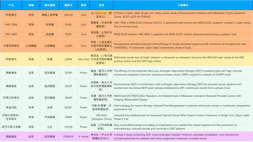 在胸腺上皮肿瘤、头颈鳞癌、肉瘤、前列腺癌、甲状腺癌等其他多个疾病领域,卡瑞利珠单抗、阿帕替尼、瑞维鲁胺、阿得贝利单抗、法米替尼、HRS-7058、HRS-4642等抗肿瘤创新药相关研究一共入选了4项口头报告、1项简短口头报告、4项壁报、1项电子壁报,彰显了世界杯官方网站入口强大的研发实力。此外,海曲泊帕和昂丹司琼口溶膜分别在防治化疗导致的血小板减少和恶心呕吐方面各有1项研究入选壁报。