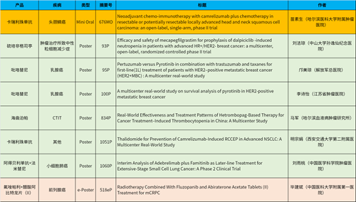 在头颈肿瘤、乳腺癌、肺癌、前列腺癌等多个疾病领域,卡瑞利珠单抗、阿得贝利单抗、吡咯替尼、氟唑帕利、法米替尼、醋酸阿比特龙片(II)等抗肿瘤新药相关研究一共入选了1项简短口头报告、4项壁报展示和1项电子壁报,彰显了世界杯官方网站入口强劲的研发实力。