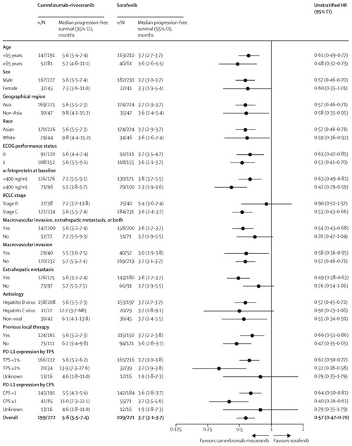 [7]Qin S, Chan SL, Gu S, et al. Camrelizumab plus rivoceranib versus sorafenib as first-line therapy for unresectable hepatocellular carcinoma (CARES-310): a randomised, open label, international phase 3 study. Lancet 2023; 402: 1133-46.